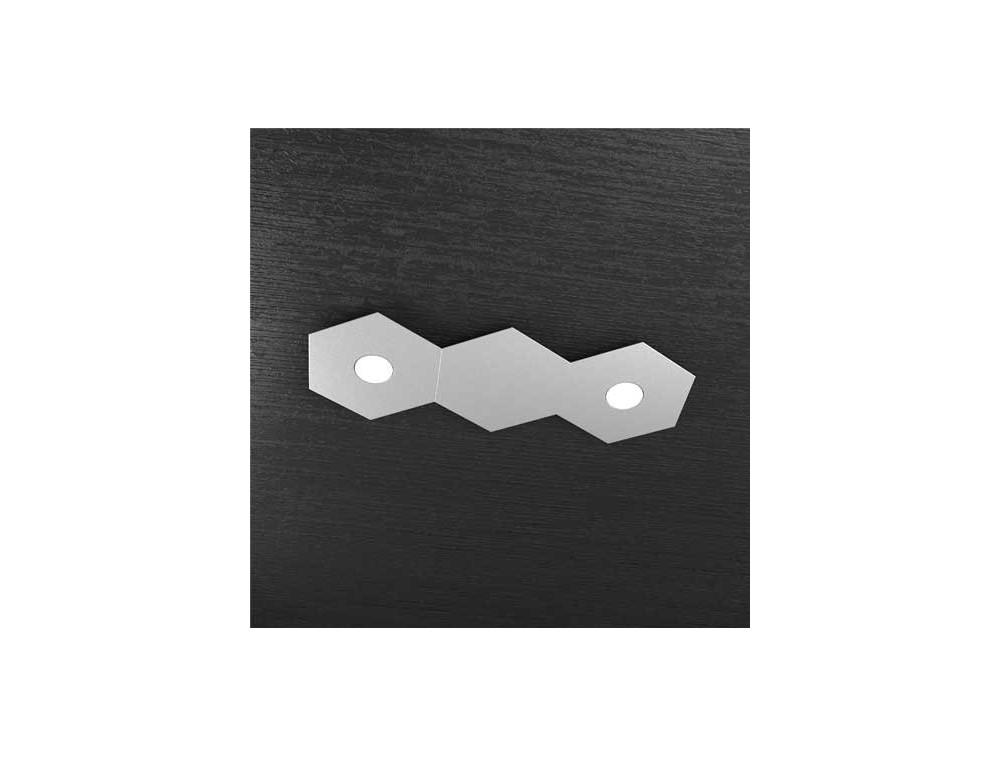 Plafoniera Hexagon da ingresso con n° 2 luci led e n°1 piastra a pannello decorativo tra le due luci che è possibile anche rimodulare in modo da cambiare forma. Dal design moderno, questa plafoniera è realizzata in metallo e ha una particolare forma esagonale, pensata da Top Light per la serie Hexagon.