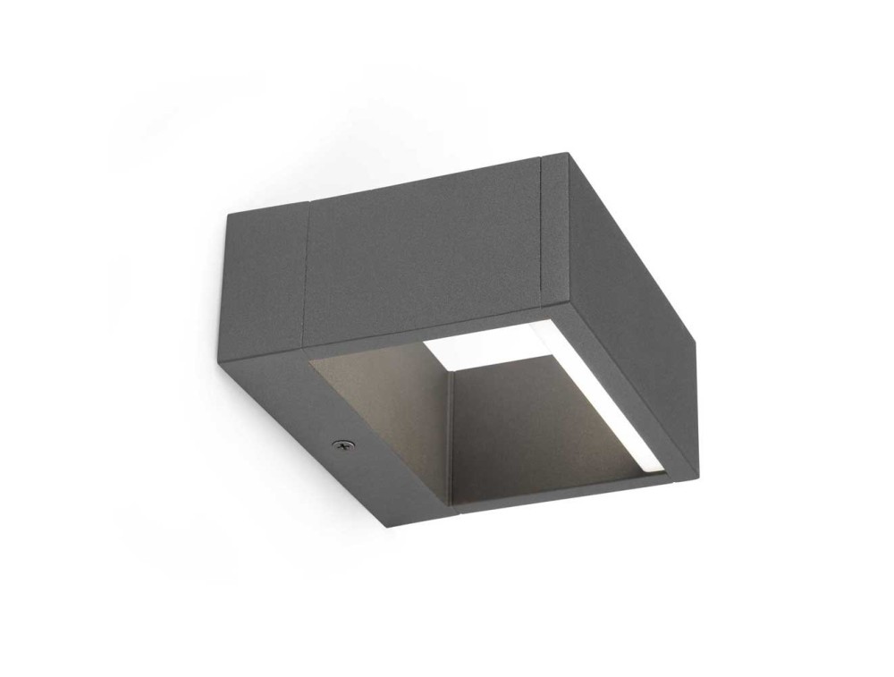 Lampada da parete da esterno led realizzata con struttura in alluminio iniettato e diffusore in policarbonato opale. Grado di protezione IP54.