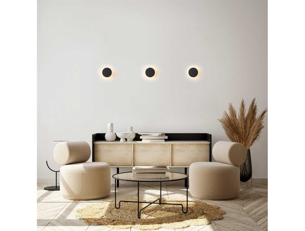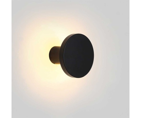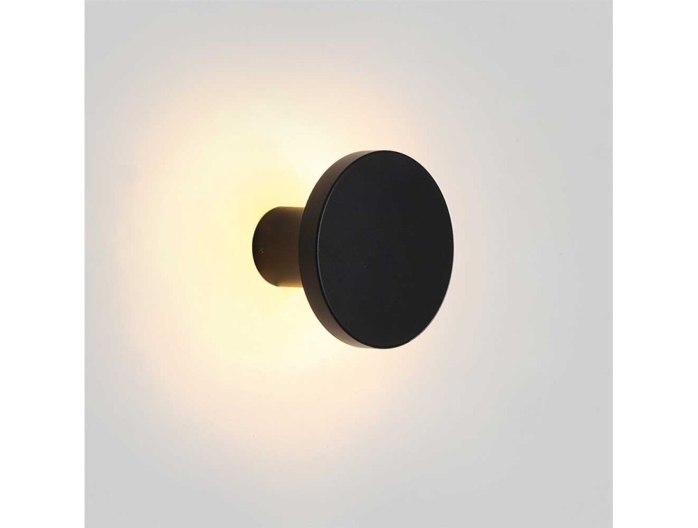 L'applique da parete CORVUS del marchio ACB presenta un corpo lampada rotondo in alluminio di colore nero testurizzato.