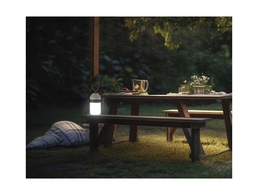 Dotata di batterie ricaricabili e cassa Bluetooth, così da poter collegare facilmente il proprio dispositivo ed ascoltare la musica in qualsiasi momento della giornata. Grado di protezione IP44.Un elemento moderno, pratico ed innovativo, multifunzionale, perfetto per le camere dei ragazzi o il soggiorno living.