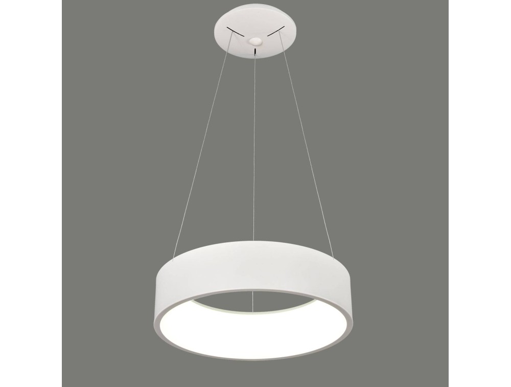 Sospensione realizzata con struttura in metallo verniciato in finitura bianca o nera e diffusore in acrilico. La luce del led si sprigiona attraverso il diffusore in acrilico di forma circolare diffondendola in tutto l'ambiente. Questa sospensione è molto versatile e particolarmente luminosa grazie alla sua finitura chiara, ideale in ambienti di design moderno come cucine, camere da letto , salotti e zone living.