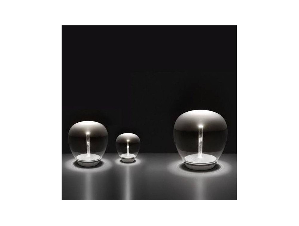 Lampada da tavolo led con struttura in metacrilato e alluminio e diffusore in vetro soffiato. Per acquisire il pieno controllo della particolare plasticità del vetro veneziano e per lavorare sull’equilibrio tra superficie e luce, Artemide ha deciso di collaborare con i maestri vetrai. Ne sono nati pezzi unici, artigianali, in cui trasparenza e opacità sono dosati sapientemente in modo da ottenere un vetro che rifletta e diffonda la luce senza abbagliare.