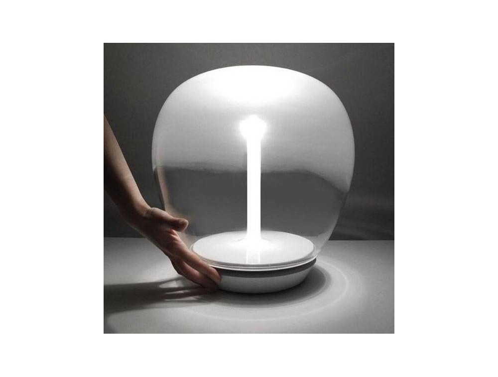 Artemide illuminazione, lampada da tavolo led con struttura in metacrilato e alluminio e diffusore in vetro soffiato.