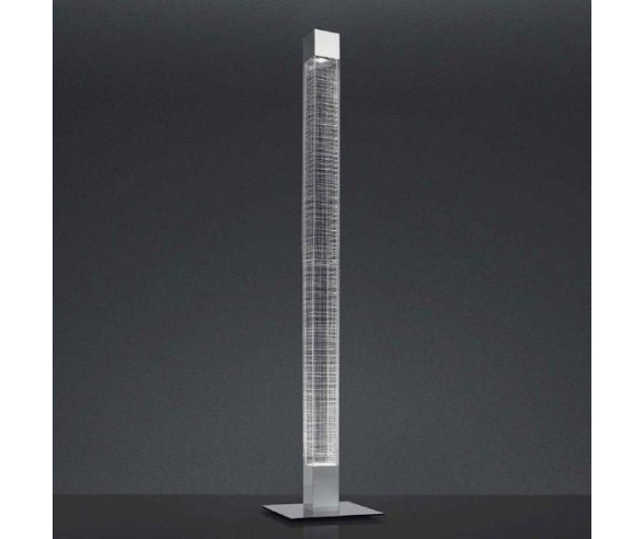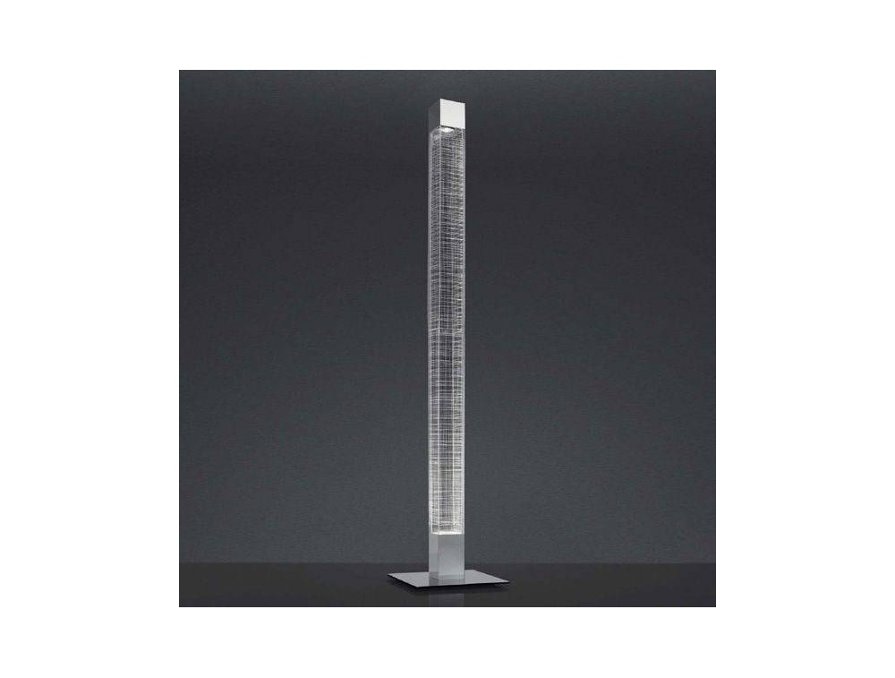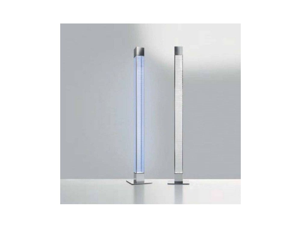 Artemide illuminazione, piantana da terra led con base in acciaio lucido, struttura in alluminio brillantato lucido e diffusore in PETG trasparente inciso.
