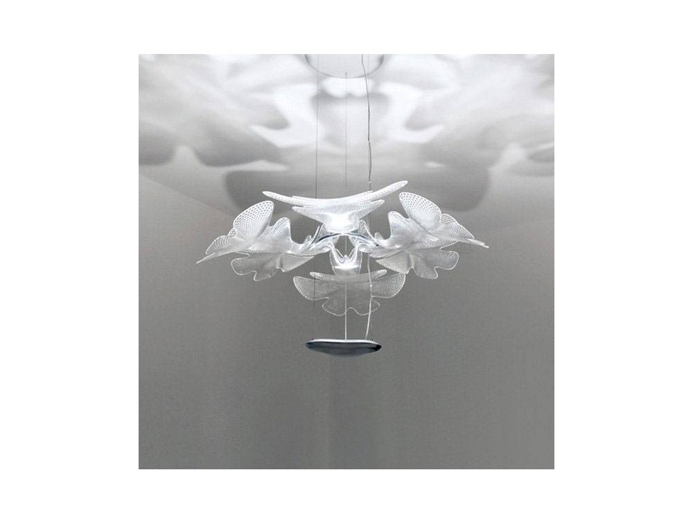 Artemide illuminazione, sospensione led con struttura e dissipatore in alluminio pressofuso con finitura lucida, foglie in tecnopolimero stampato ad iniezione con finitura trasparente.