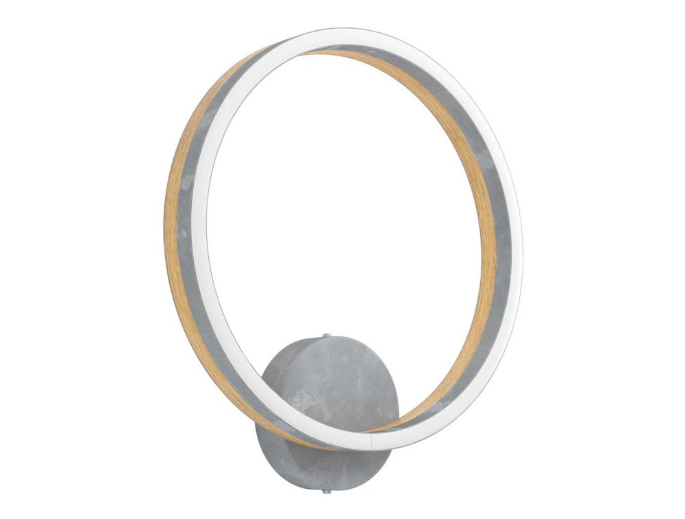L’applique a LED CADINARO è composta da un anello luminoso in rovere impiallacciato con effetto cemento e da una base rotonda in metallo del medesimo colore. I LED integrati al di sotto del plafone in plastica bianca emanano una luce bianca piacevolmente calda. Questa applique, con il suo interessante mix di legno e cemento, si armonizza in tendenze moderne fungendo da attrazione particolare alla parete del soggiorno, della camera da letto, del corridoio o della sala da pranzo.
