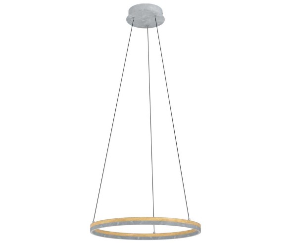 La lampada a sospensione a LED CADINARO è composta da un anello luminoso in rovere impiallacciato e metallo con effetto cemento. L’anello pende tramite tre corde nere a un baldacchino rotondo in metallo color cemento. I LED integrati al di sotto del plafone bianco in plastica emanano una luce bianca piacevolmente calda e sono dimmerabili alla parete tramite apposito dimmer girevole. Questa lampada con il suo interessante mix di legno e cemento si armonizza in tendenze moderne fungendo da attrazione particolare nel soggiorno o nella sala da pranzo.