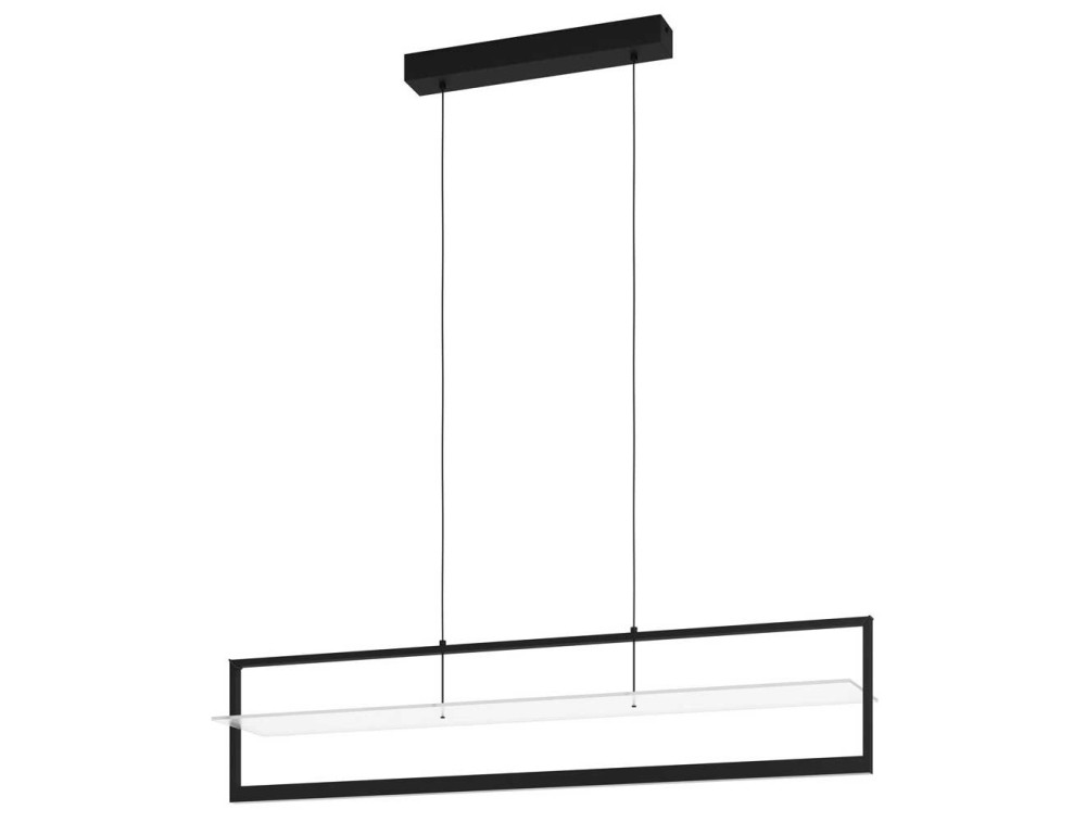 La lampada a sospensione a LED FARNETA è composta da una cornice rettangolare nera in metallo con all’interno un elemento luminoso bianco satinato in acrilico. I LED integrati emanano una luce bianca piacevolmente calda e sono dimmerabili alla parete tramite apposito dimmer girevole. Questo lampadario, grazie al suo design lineare, si armonizza perfettamente con stili di arredo moderno offrendo un’illuminazione elegante per ogni ambiente, che sia nel soggiorno o nella sala da pranzo, posizionato al di sopra del tavolo da pranzo.