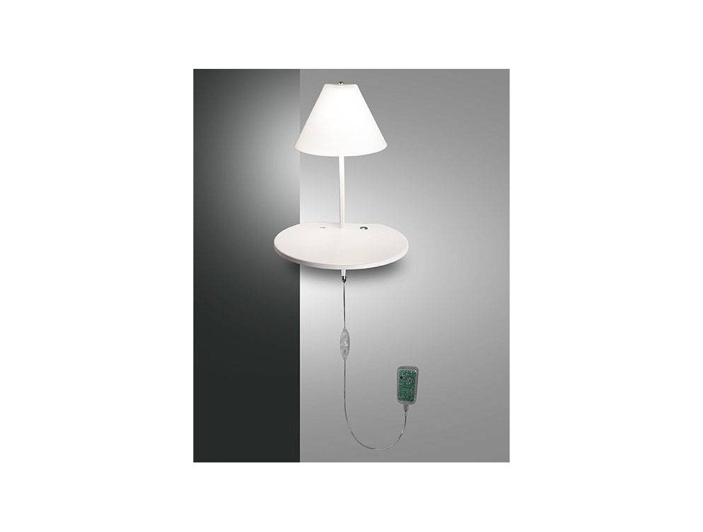 Applique led realizzato con struttura in metallo disponibile nelle finiture bianco, tortora o antracite e diffusore in vetro soffiato. Lampada dal design essenziale ma particolare allo stesso tempo, la sua struttura dalla linea moderna e basic è arricchita da un ripiano di piccole dimensioni che funge da accessorio, ideale in camere da letto, corridoi e bagni di design moderno.