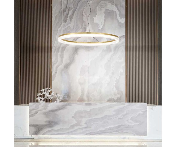 Lampadario di design, ideale per ambienti di prestigio e di grandi dimensioni, come un soggiorno o un salotto, ma adatto anche per hotel, alberghi, ristoranti o reception di uffici. Garanzia inclusa due anni. Durata del led stimata a 30.000 ore.