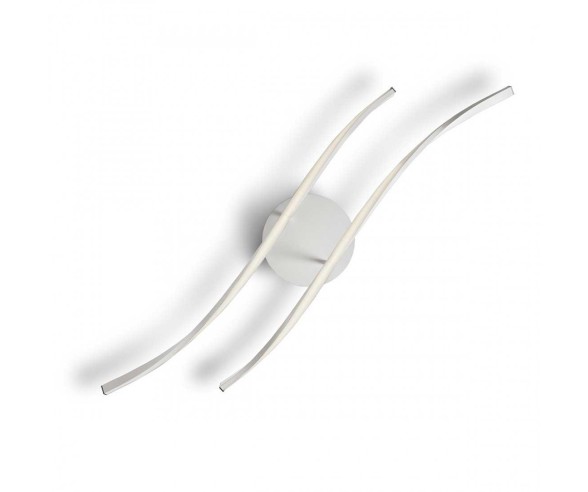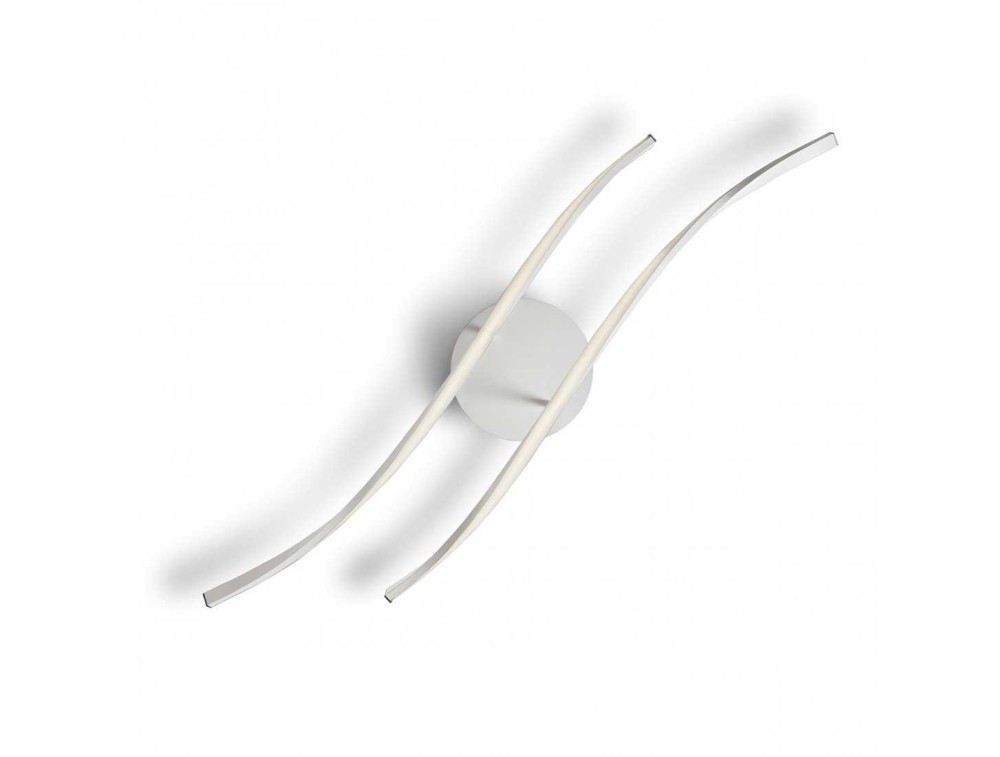 Lampada a parete con montatura in metallo bianco e diffusore in acrilico bianco.