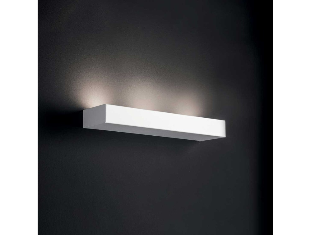 Applique moderno minimale nel suo design e dalla forma geometrica con monoemissione di luce nella parte superiore. Una lampada da parete consigliata per l'ingresso, le scale, il corridoio, la camera (in assenza di armadio), zona divano ... per un'illuminazione indiretta di piacevole atmosfera e compagnia. L'applique permette l'installazione con la luce sia rivolta verso l'alto o verso il basso, secondo le proprie esigenze.