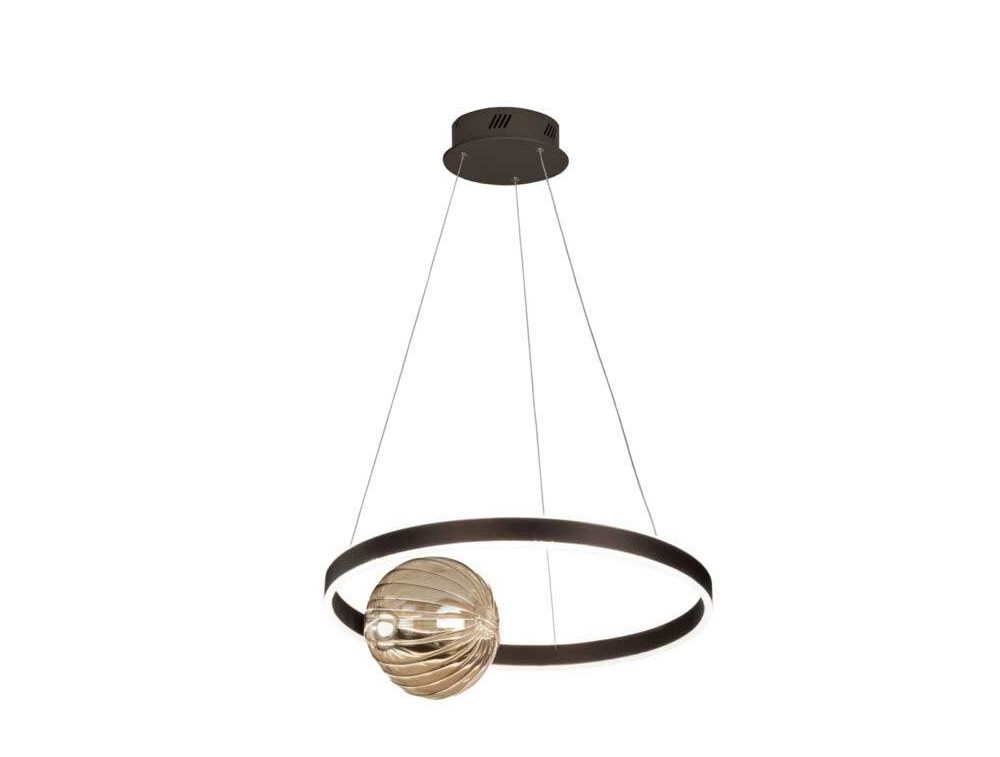 Lampadario per illuminare una cucina, dal design elegante e raffinato composto da un cerchio o anello disponibile nei colori nero, oro, o marrone, dove è posta la sorgente di luce led 3000k calda dimmerabile per potere variare l'intensità della luce
