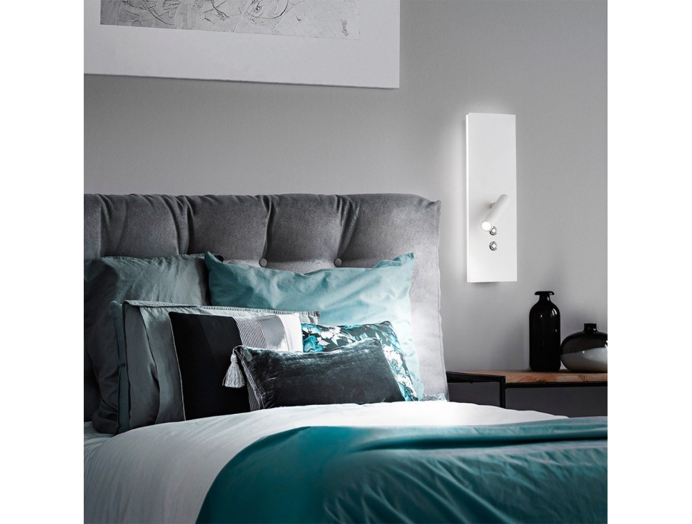 Perenz illuminazione, applique moderno composto da una base decorativa che fornisce una luce di cortesia riflessa sulla parete, e un faretto orientabile che illumina a fascio. Lampada da parete ideale da posizionare accanto al comodino per rendere più facili e piacevoli le letture serali a letto.