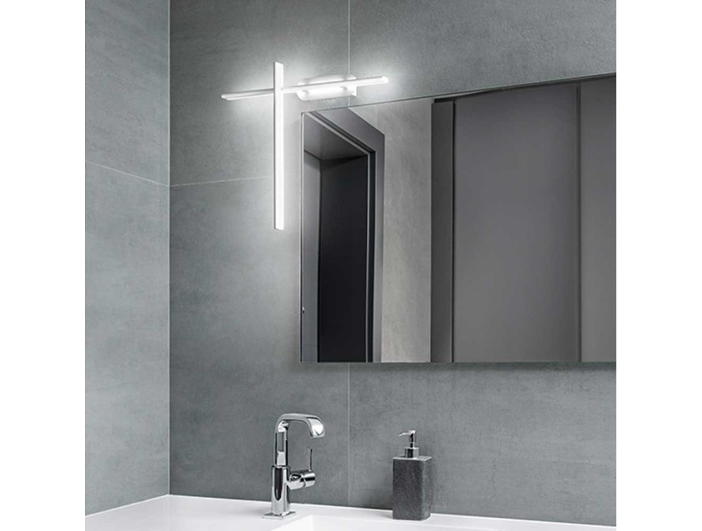Tange applique in alluminio verniciato a polvere colore bianco o nero opaco con 2 o 4 diffusori incrociati in acrilico satinato (luce indiretta) ideale per installazione in soggiorno, camera, ingresso, corridoio, una lampada di design minimalista, dove grazie al sistema cct che consente di variare la tonalità della luce da calda a naturale fino ad arrivare a luce fredda spostando semplicemente il tastino posto sulla lampada per scegliere la luce preferita.