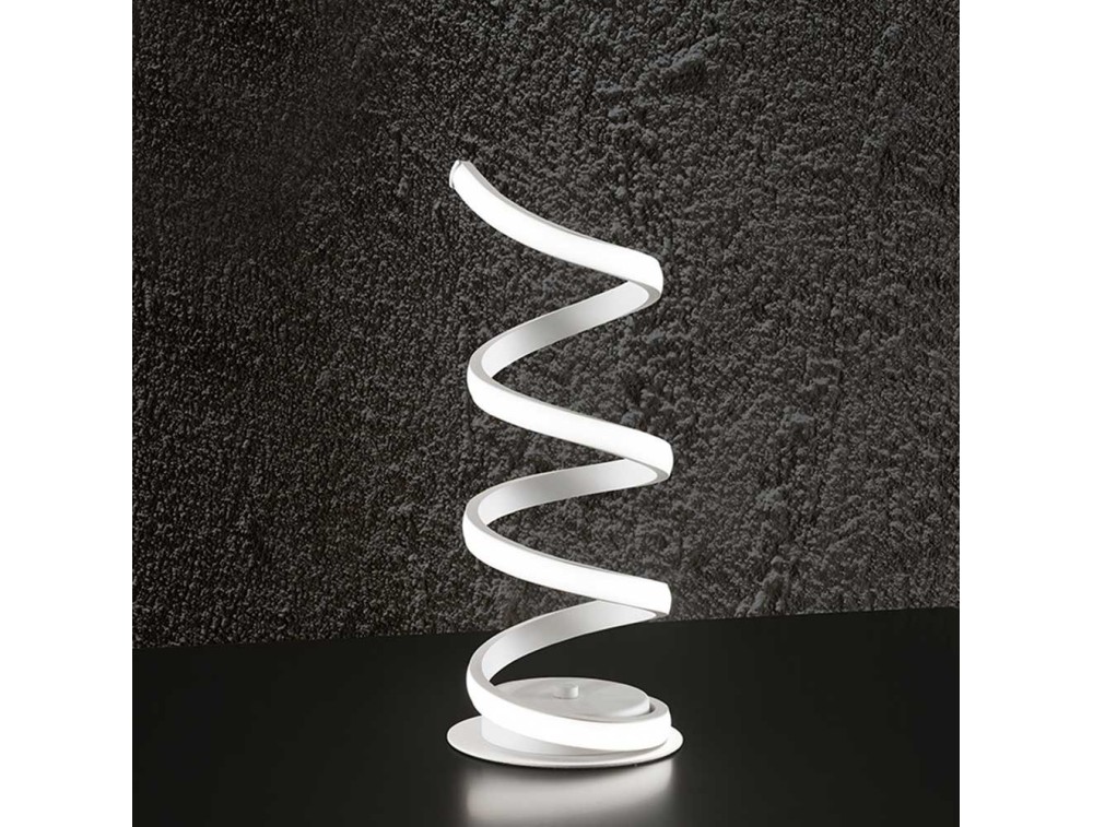 Lampada da tavolo ultra moderno in metallo bianco o cromato con sorgente luminosa a led. Una sospensione che illumina e al tempo stesso arreda ambienti interni. Certamente è uno degli apparecchi più stimolanti per i designer. Data la loro capacità di occupare spazio, le lampade a sospensione sono un elemento essenziale per la decorazione di una stanza.