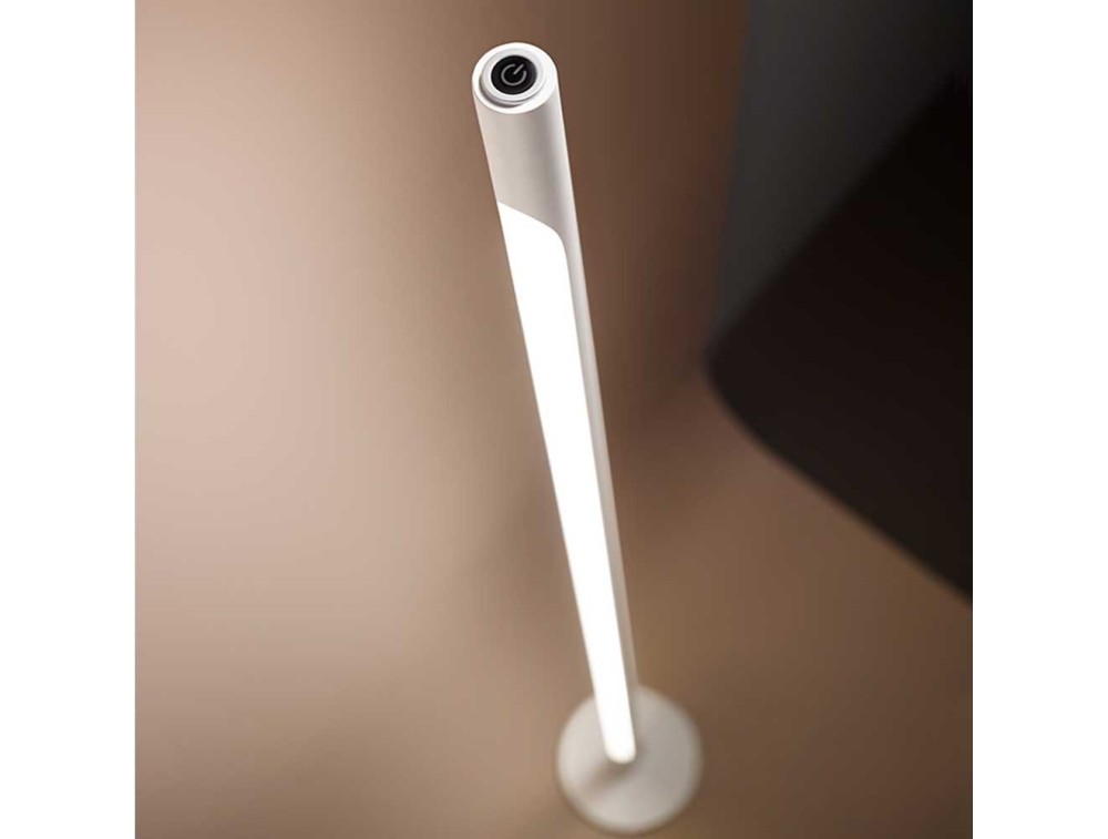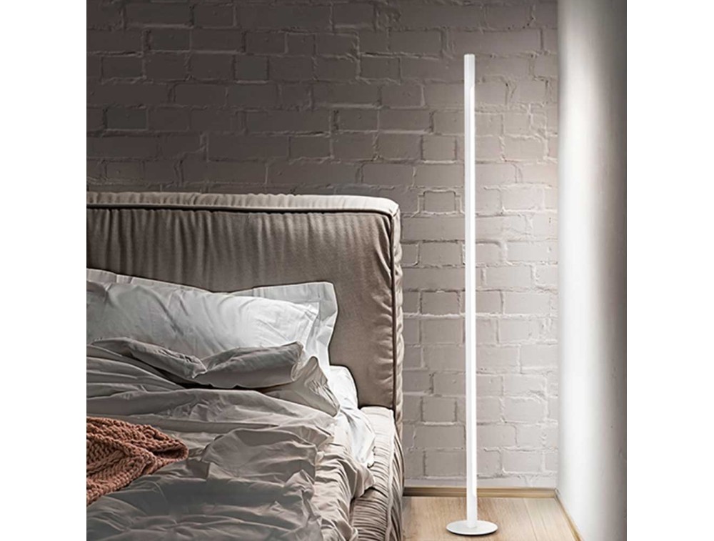 Perenz illuminazione, Piantana di forma tubolare in metallo verniciato a polvere colore bianco opaco con diffusore in acrilico satinato. Interruttore touch dimmer posizionato sulla parte superiore del cilindro.