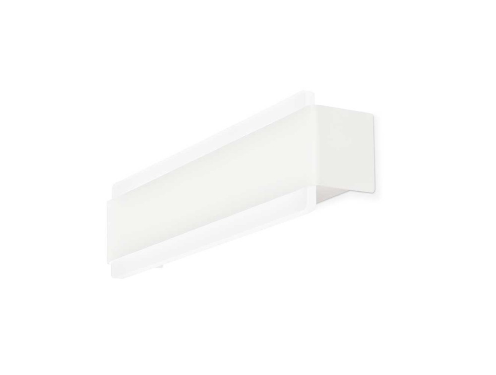 Applique realizzato con montatura in metallo bianco. Lampada dal design moderno, semplice e pulito e che non invade il vostro arredamento. Una fascia di metallo con diffusore plastico che diffonde luce indiretta sia verso il sopra che verso il sotto. Ideale in ambienti di design moderno come corridoi, cucine, entrate e bagni.
