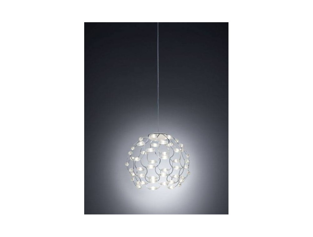 Sospensione realizzata con struttura in metallo disponibile nelle finiture cromo o rame. Lampada moderna e particolare, garantisce una perfetta illuminazione dell' ambiente e crea un' atmosfera suggestiva grazie alla rete di metallo contenete le luci led; La collezione Lamoi essendo molto versatile è ideale per situazioni differenti, siano esse pubbliche o private. Disponibile in tre dimensioni per soddisfare ogni esigenza del consumatore.