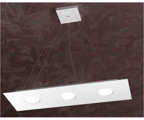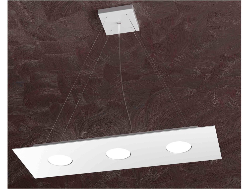 Sospensione a 3 luci realizzata con struttura in metallo verniciato disponibile nelle finiture sabbia,grigio o bianco e diffusore in materiale acrilico. La struttura di forma rettangolare, minimale ed ultrasottile di questa lampada è ideale per esaltare l'innovazione del design della stanza in cui viene collocata in maniera discreta. Ideale da installare in corridoi, bagni, salotti, camere da letto, zone living e al di sopra di cucine con penisole di design moderno.