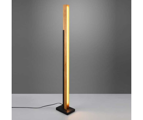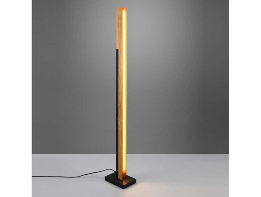 Trio, Lampada da terra moderna in metallo nero e legno. Intensità della luce regolabile a tre livelli.