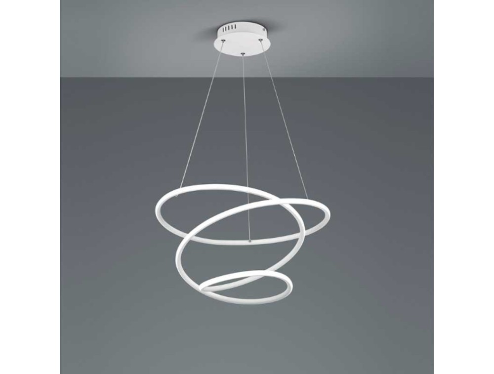 Il lampadario a sospensione BOLOGNA di Trio Lighting presenta uno struttura in metallo di colore bianco opaco con diffusore circolare, ondulato su se stesso, come a voler formare un vortice di luce. Cavetti regolabili in lunghezza che permettono di impostare l'altezza del diffusore in base le proprie esigenze. Sorgente luminosa a LED integrato da 36 watt, ottima resa luminosa 5100 lumen, temperatura colore 4000k (effetto bianco neutro). Grazie alla funzione dimmer è possibile regolare l'intensità luminosa a diversi livelli, grazie al normale interruttore della luce. Questa lampada non è compatibile con dimmer esterno, la sua luce può variare solo tramite dimmer integrato. Una sospensione dal design ultramoderno e accattivante, linee circolari e sinuose, un vortice luminoso che illumina e arreda con stile ed eleganza la vostra casa moderna. Ideale per illuminare in maniera diffusa il tavolo della vostra cucina moderna o ancora la console del vostro soggiorno living, loft, open space o salotto.