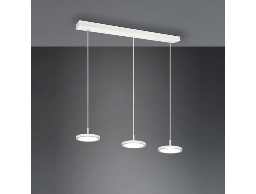 La lampada a sospensione TRAY del brand Trio Lighting è composta da una montatura interamente in metallo di colore bianco opaco con diffusore a forma di disco led. Sorgente luminosa integrato SMD LED da 29 watt, resa luminosa 3750 lumen, temperatura colore 4000k (effetto bianco neutro). La luminosità può essere regolata esternamente di continuo tramite un telecomando standard per luci. Questo articolo è inclinabile e permette di direzionare il flusso luminoso in base le proprie esigenze. Una lampada dalla forma semplice, un disco Led prettamente moderno, che si inserisce perfettamente in ambienti residenziali o anche lavorativi e commerciali. Perfetta ad esempio per illuminare cucine, soggiorni, zone living o anche uffici e negozi di vario genere.