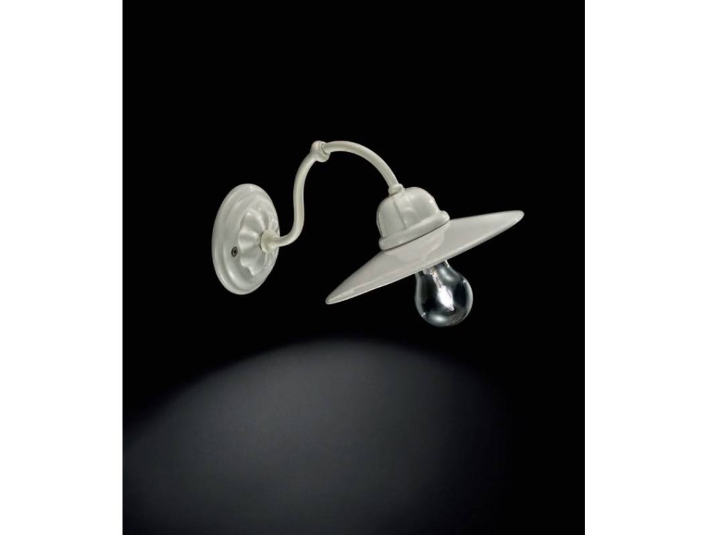 Ferroluce applique realizzato con struttura e diffusore in lamiera di metallo smaltata lucida.