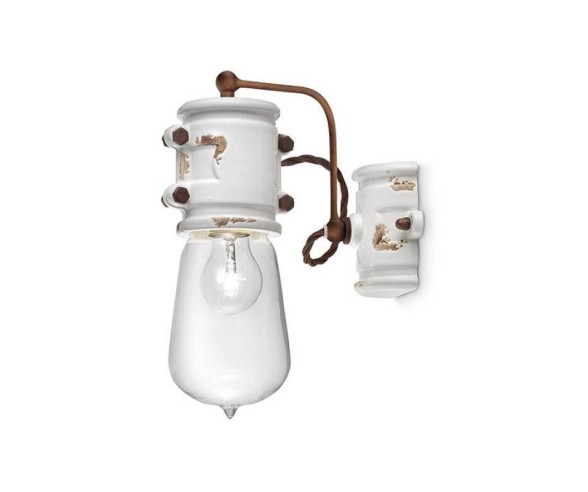 Ferroluce illuminazione, applique realizzato con struttura in metallo e diffusore in vetro e ceramica smaltata in vari colori.