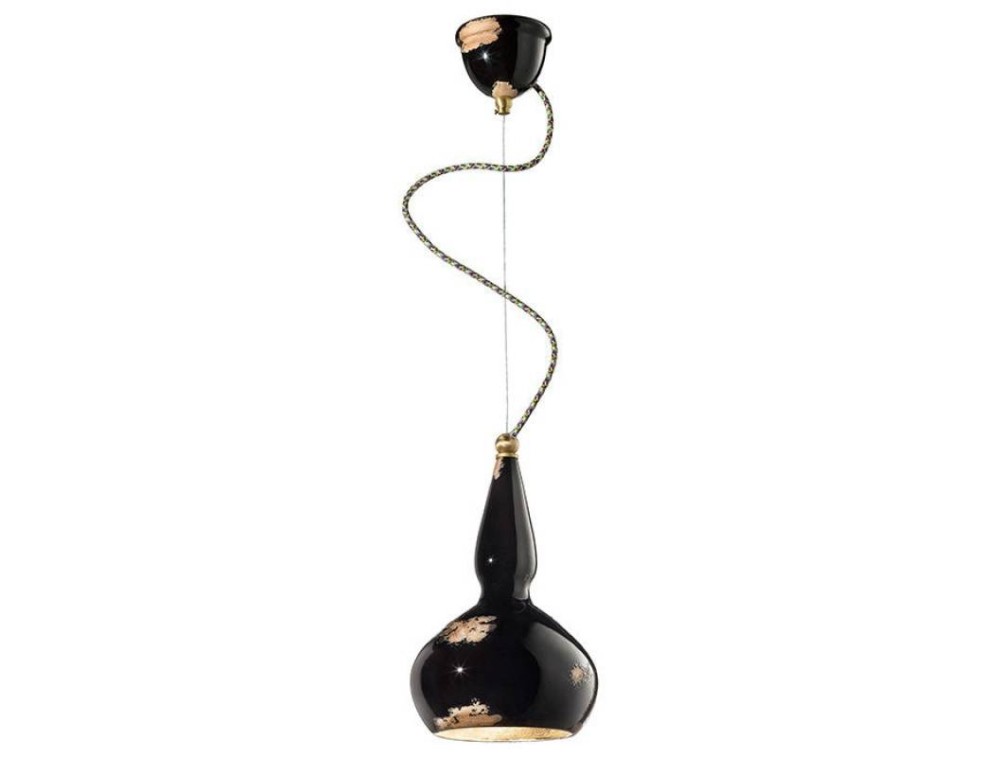 Ferroluce lampade e lampadari, sospensione realizzata con struttura in metallo e diffusore in ceramica smaltata in vari colori ed effetti.