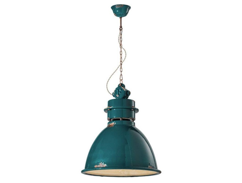 Ferroluce illuminazione, sospensione realizzata con struttura e diffusore in metallo invecchiato verniciato in finiture lucide.