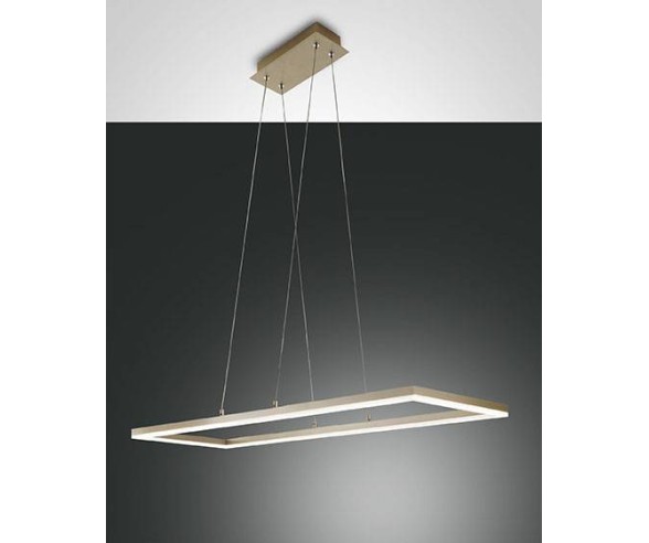 Sospensione led realizzata con struttura in alluminio e diffusore in metacrilato, lampada disponibile nelle finiture bianco oppure oro opaco. Lampada composta da un rettangolo dal design innovativo che viene accentuato dalla sorgente led contenuta nel diffusore in metacrilato. Luminosa e moderna questa sospensione garantisce un illuminazione di alta qualità grazie all'assemblaggio della sua struttura che permette alla luce di essere diffusa in ogni angolo del vostro ambiente moderno.