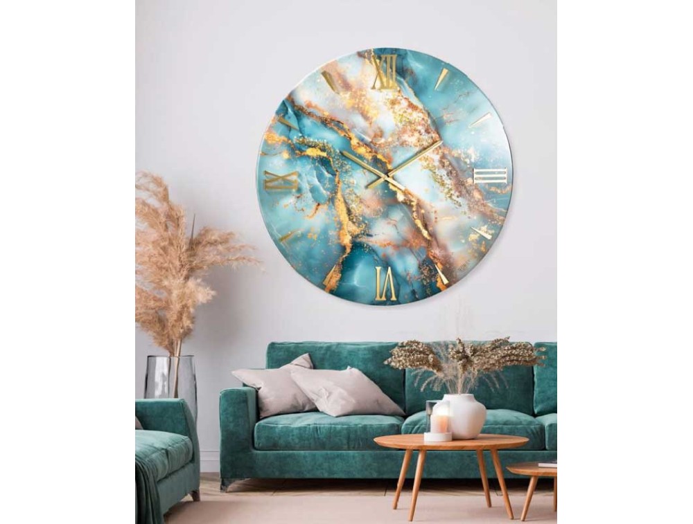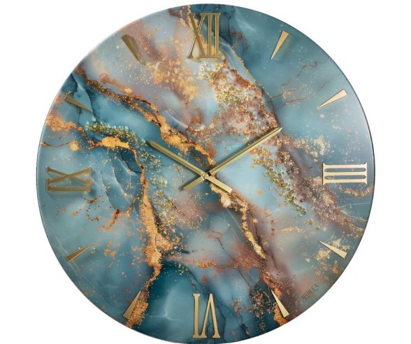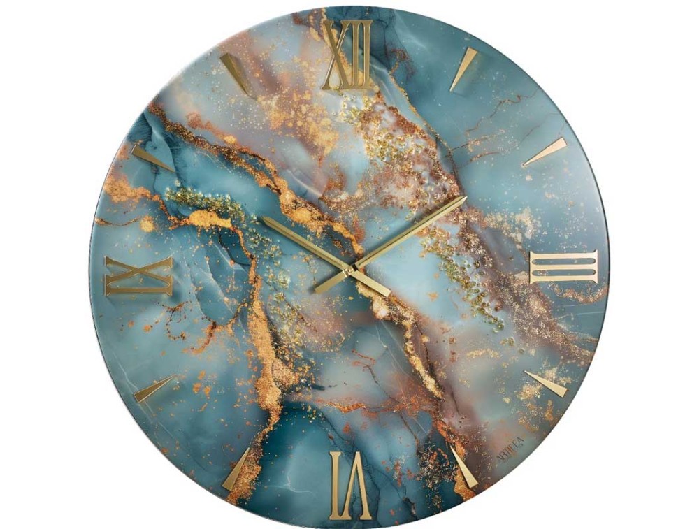 Un orologio da parete moderno effetto marmo dal forte impatto estetico, interamente realizzato a mano in Italia. La base in legno accoglie una colata di resina epossidica di qualità superiore, resistente ai raggi UV per garantire stabilità cromatica nel tempo. Foglia oro e cristalli tono su tono creano giochi di luce e profondità, trasformandolo in un vero elemento decorativo. I numeri in plexiglass oro specchiato e le lancette in metallo cromato oro aggiungono una nota contemporanea. Si presta perfettamente a pareti ampie di salotti, ingressi o uffici. Ogni orologio viene decorato, rifinito e assemblato interamente a mano, ogni eventuale piccola imperfezione è sinonimo di originalità.