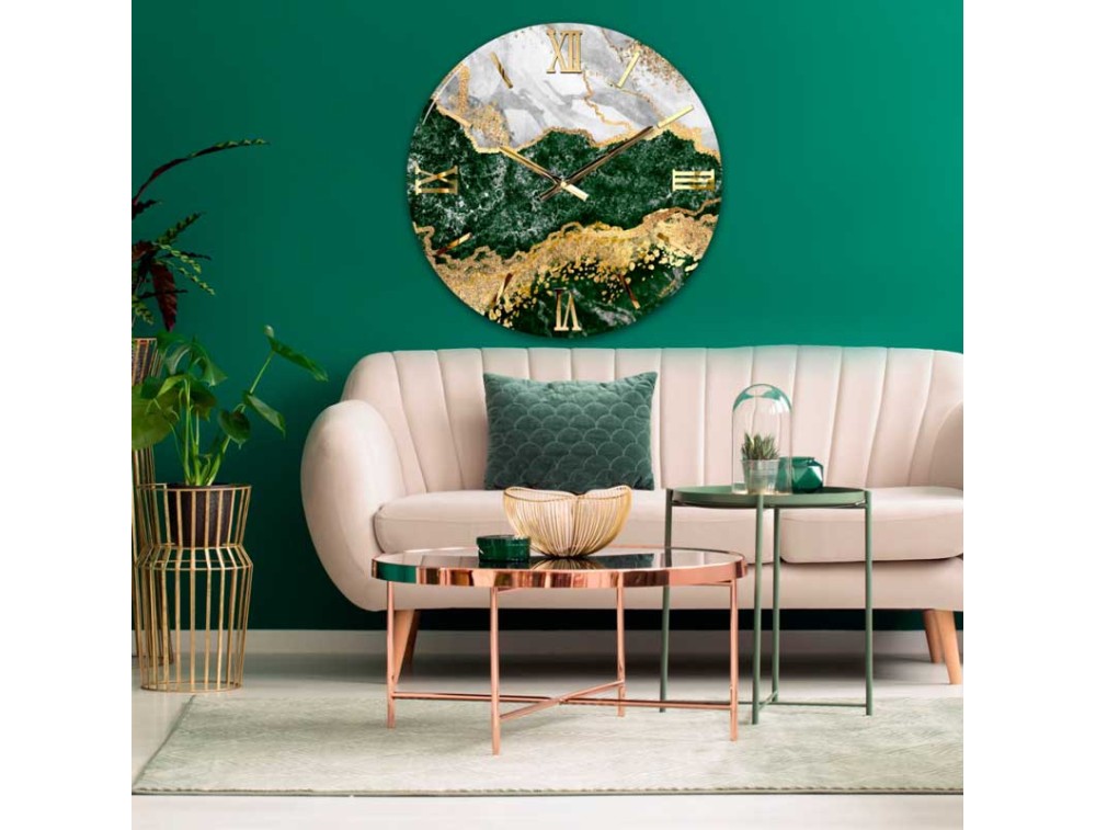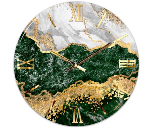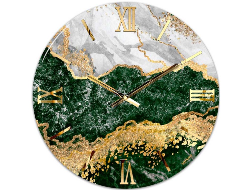 Interamente realizzato a mano in Italia con base in legno e resina lucida colata. Orologio circolare con quadrante lucido, decorato con foglia oro e numeri sovrapposti in Plexiglass lucido con effetto specchio. Lancette in metallo lucido.