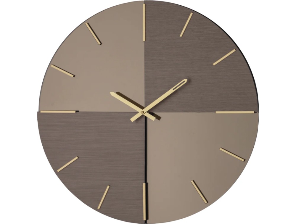 Si distingue per l’equilibrio tra materiali riflettenti e finiture opache. La base in vetro specchiato fumee o bronzo, suddivisa in quattro sezioni con applicazioni in cast metallizzato, crea un affascinante gioco di superfici e profondità. Gli indici lineari in plexiglass si fondono armoniosamente con la composizione, mentre le lancette in metallo lucido aggiungono brillantezza e precisione. Un orologio da parete elegante perfetto per ambienti contemporanei, dal gusto essenziale. La spedizione è gratuita e la garanzia di 2 anni.
