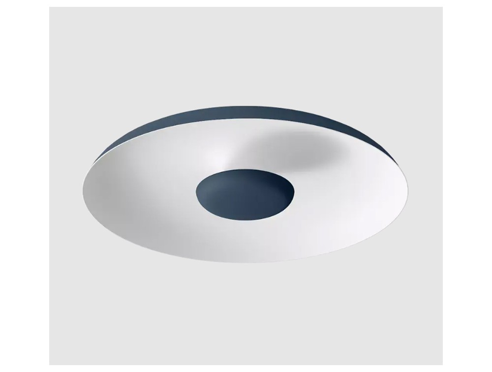 Plafoniera dal design essenziale e contemporaneo, ideale per ambienti contract, residenziali e hospitality. Il corpo in alluminio verniciato con finitura texturizzata è disponibile nei colori bianco, nero, peach, petrol e deep blue, per un’integrazione armoniosa con ogni stile d’interni, dal più sobrio al più creativo. L’interno è verniciato bianco opaco, scelta che ottimizza la diffusione della luce e garantisce un’illuminazione omogenea e confortevole. Un dettaglio distintivo è rappresentato dall’elemento centrale, realizzato nello stesso colore della finitura esterna, che conferisce equilibrio visivo e cura del design.