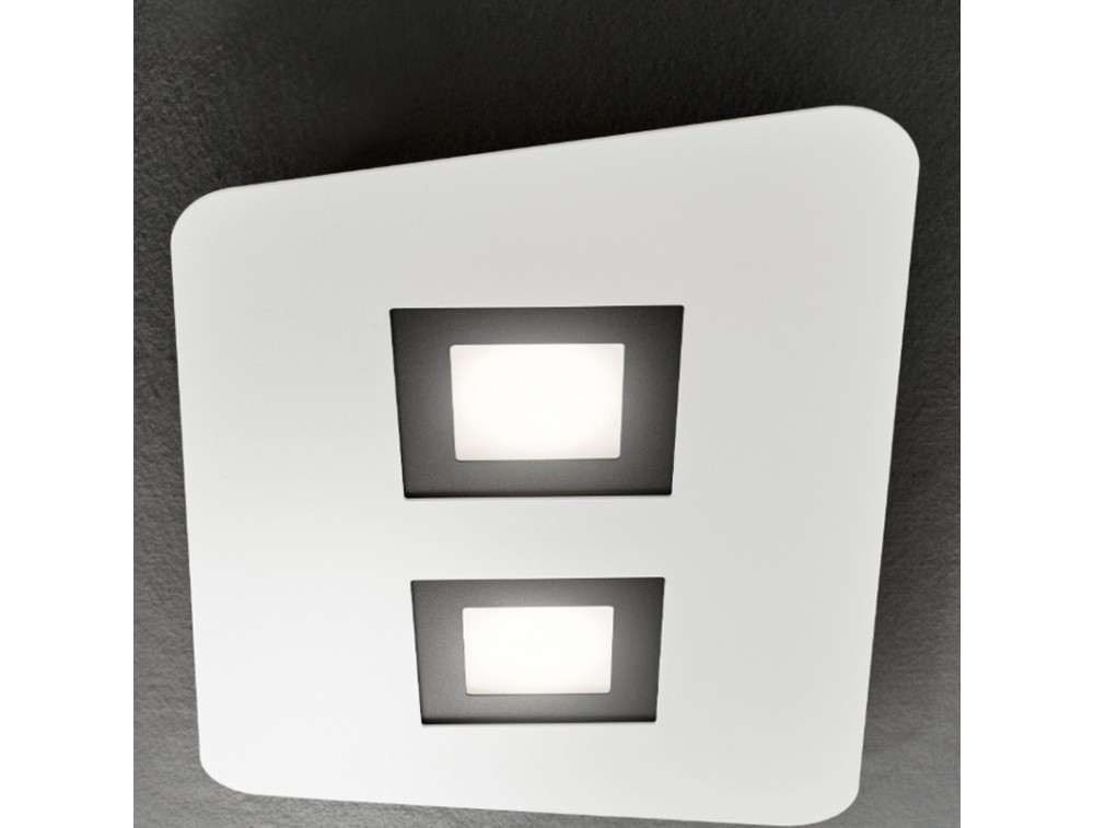 Plafoniera con montatura in metallo bianco o antracite con quadrello intercambiabile nei colori: bianco, antracite, grigio e sabbia. Possibile installarla anche come plafoniera da soffitto. Grazie alla sua forma piatta e pulita, è perfetta per ambienti con soffitti bassi o per essere installata in corridoi e zone di passaggio dove un lampadario ingombrante sarebbe d'intralcio. Grazie ai quadrelli verniciati la rende adatta anche a salotti o camere da letto che cercano un dettaglio prezioso ma discreto.