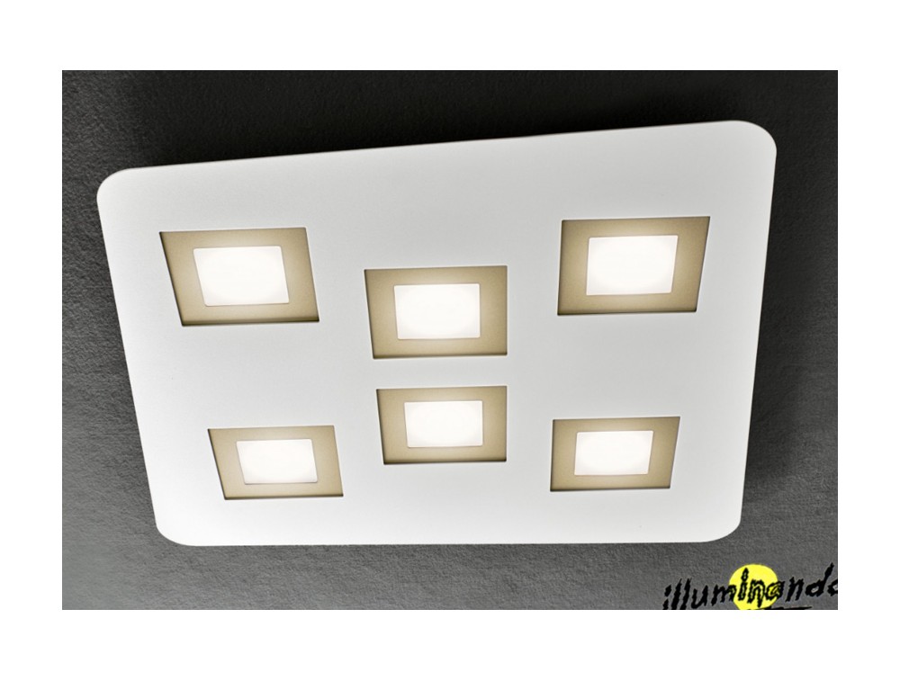 Plafoniera con montatura in metallo bianco o antracite con quadrello intercambiabile nei colori: bianco, antracite, grigio e sabbia. Possibile installarla anche come plafoniera da soffitto. Grazie alla sua forma piatta e pulita, è perfetta per ambienti con soffitti bassi o per essere installata in corridoi e zone di passaggio dove un lampadario ingombrante sarebbe d'intralcio. Grazie ai quadrelli verniciati la rende adatta anche a salotti o camere da letto che cercano un dettaglio prezioso ma discreto.