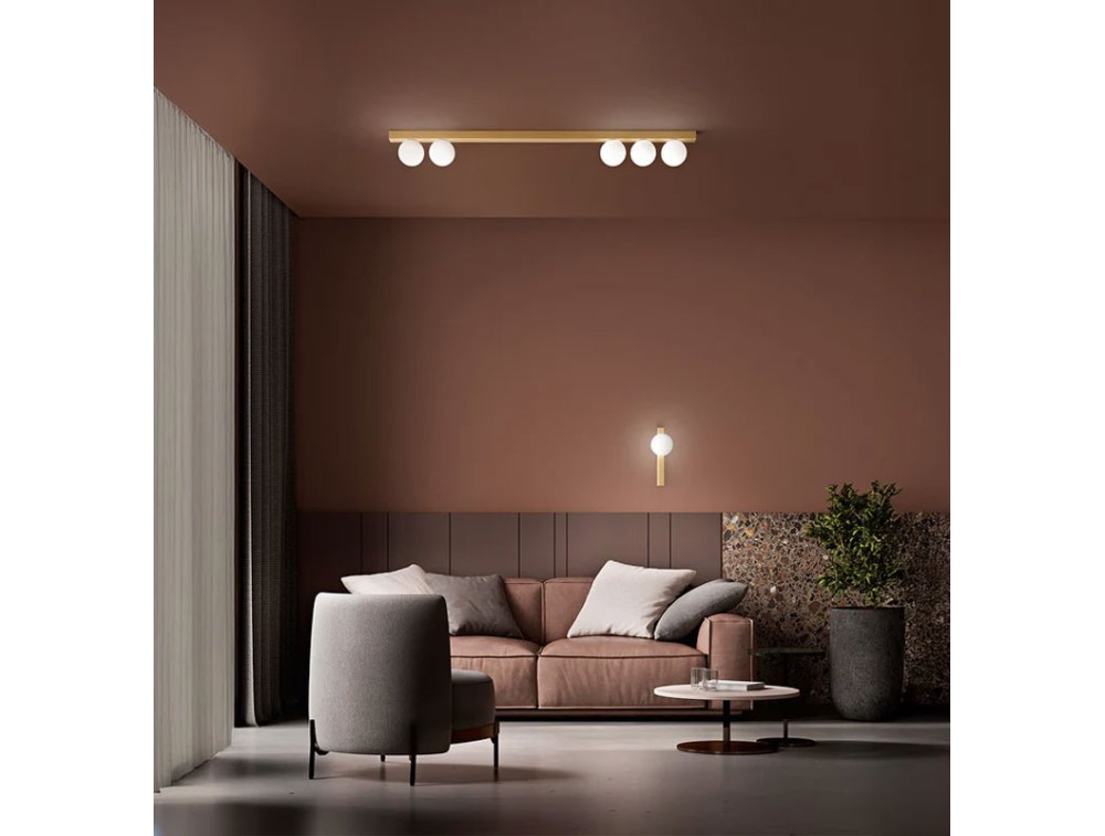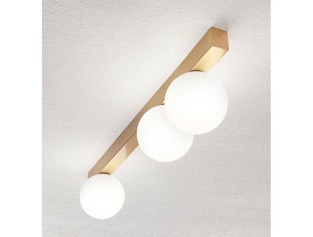 Plafoniera dal design elegante, con struttura in metallo e alluminio verniciato a polvere, disponibile nelle finiture bianco, grigio titanio e oro opaco. I diffusori sono sfere in vetro soffiato bianco acidato, che donano una luce morbida e uniforme. Dotata di lampadina G9, garantisce un utilizzo semplice e una facile sostituzione. Disponibile in tre diverse misure, perfetto per cucina, salotto, camera da letto e corridoio.
