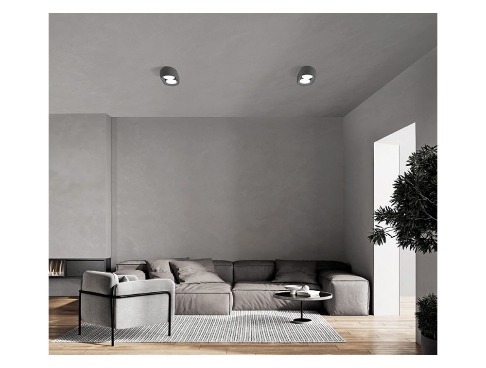 Lampada da soffitto in gesso disponibile nei colori grigio quarzo o bianca dotata di portalampada GX53. Perfetta per illuminare l'intera stanza in modo diffuso. Ideale per ambienti dove non si vuole rinunciare al design. Perfetta per cucina, salotto, corridoio e camera da letto.