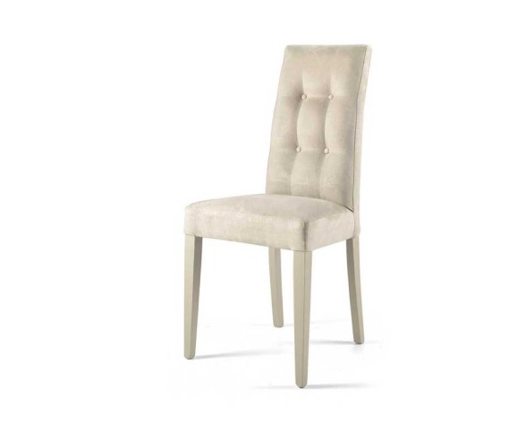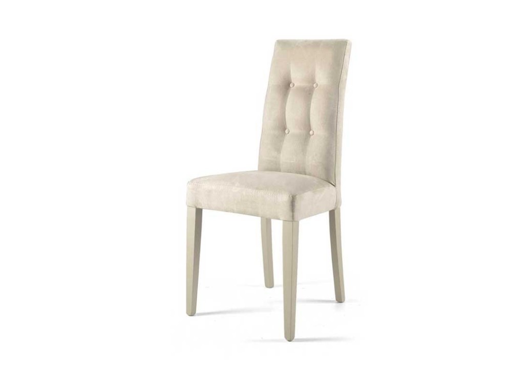 CAPODARTE Sedia DOUGLAS in tessuto alcantara con gambe in legno; schienale capitonnè, disponibile beige o grigio.