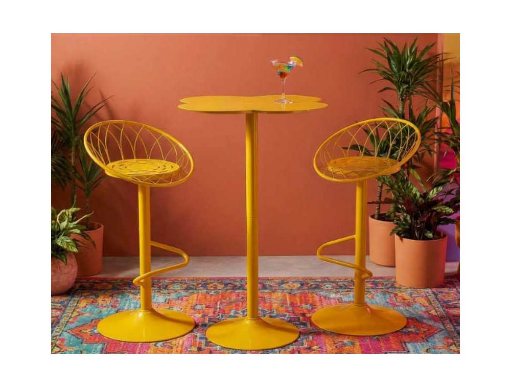 Linee sottili e struttura metallica per uno sgabello dal design deciso. Il colore senape esalta la forma rendendolo un complemento elegante e funzionale. Realizzato in metallo.