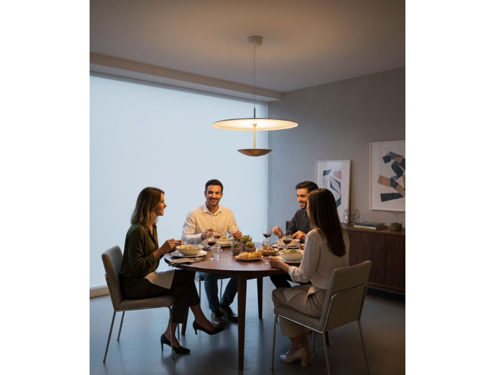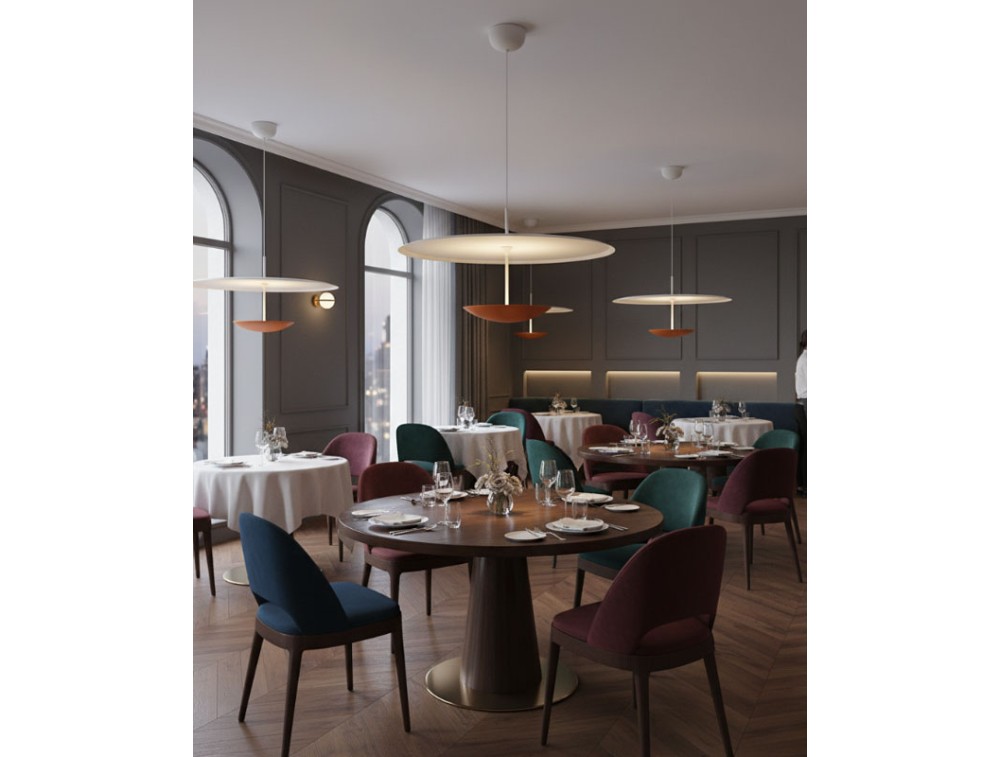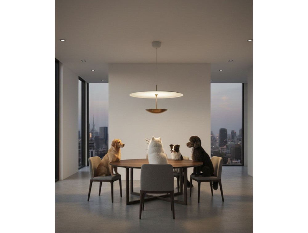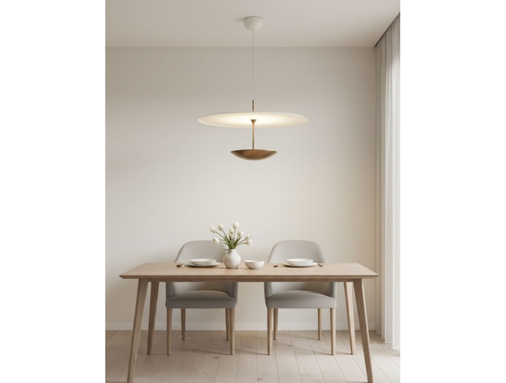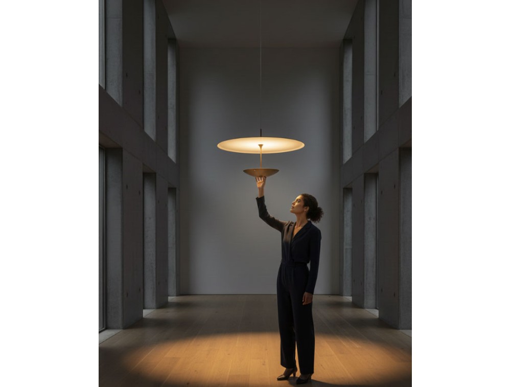Realizzata in alluminio. Unisce tecnologia e interazione diretta con la luce. Si integra in una collezione insieme alle plafoniere della stessa serie, creando un sistema coordinato che interpreta il design contemporaneo attraverso l’equilibrio tra forma e funzione. Il suo sistema saliscendi permette di regolare facilmente l’altezza della lampada, adattandola a ogni spazio e necessità. Il comando touch, integrato nel corpo lampada, consente di accendere, spegnere e regolare l’intensità luminosa con un semplice tocco, per un controllo immediato e naturale. Il disco luminoso, dal design essenziale, diffonde una luce uniforme e avvolgente, ideale per creare zone funzionali o atmosfere più intime. La possibilità di modulare sia l’altezza sia la luminosità la rende perfetta per tavoli da pranzo, isole cucina, spazi di lavoro e aree conversazione.