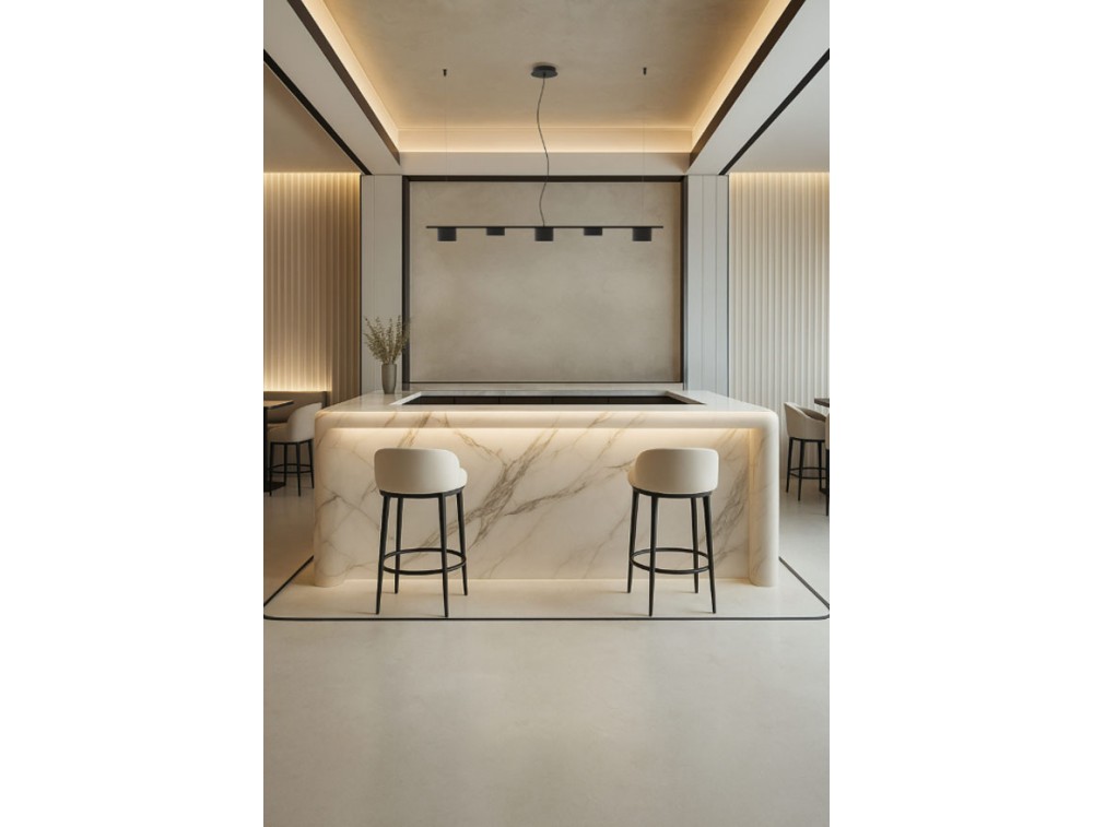Realizzata in metallo con finitura nero goffrato o ottone spazzolato e utilizza sorgenti luminose GX53. La sospensione è dotata di 5 luci, garantendo un’illuminazione uniforme. Elemento d'arredo dal design minimalista e contemporaneo, perfetto per illuminare in modo diffuso e scenografico zone ampie come un'isola della cucina o un tavolo da pranzo. Si sposa perfettamente con stili Modern Luxury, Scandinavian o Minimalista, dove la pulizia delle linee è fondamentale.