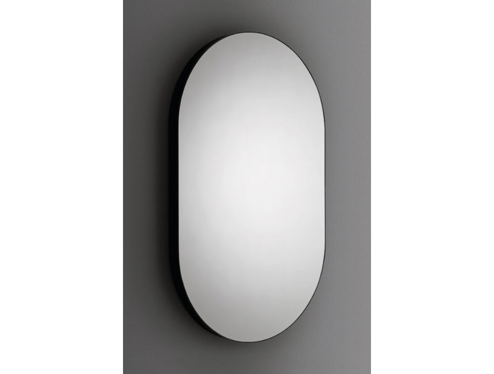 Specchio con cornice perimetrale in metallo verniciato sagomata. Disponibile in diverse finiture. Disponibile la versione "Edge Ambient" con la retroilluminazione led e "Edge Light A/Light B" con led.