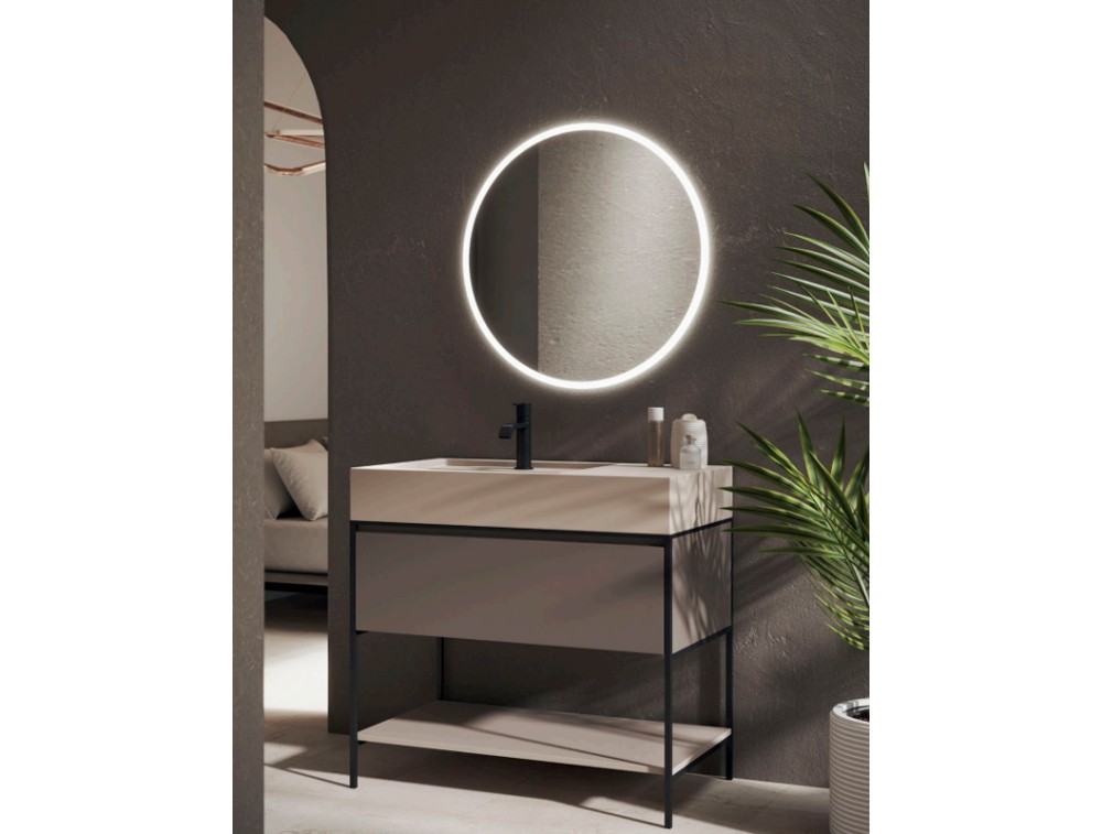 Specchio rotondo con sabbiatura perimetrale mm.18 retroilluminata led, diffusione della luce con sistema ad alta performance. Spessore specchio 4mm. Protezione IP44.