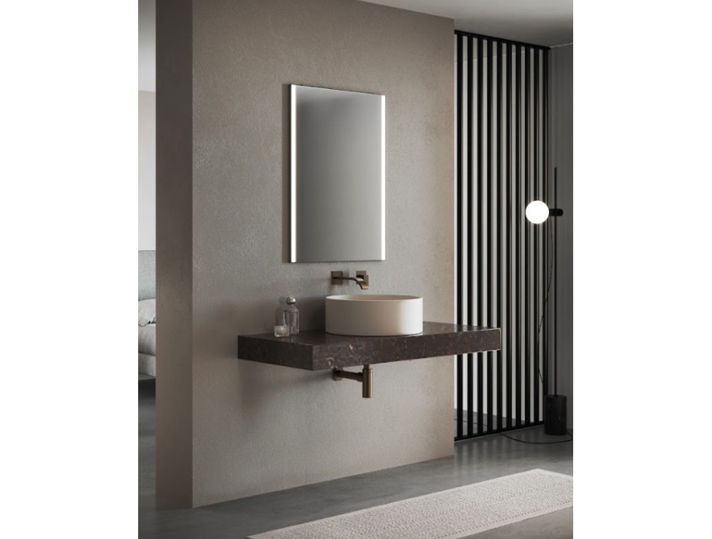 Ideale per bagni che puntano su un'eleganza rigorosa e materiali di pregio. Si tratta di uno specchio rettangolare a sviluppo verticale dalle linee nette e squadrate. Il design è di tipo frameless (senza cornice), il che gli permette di integrarsi in modo fluido sulla parete materica. La spedizione è gratuita e la garanzia di 2 anni.