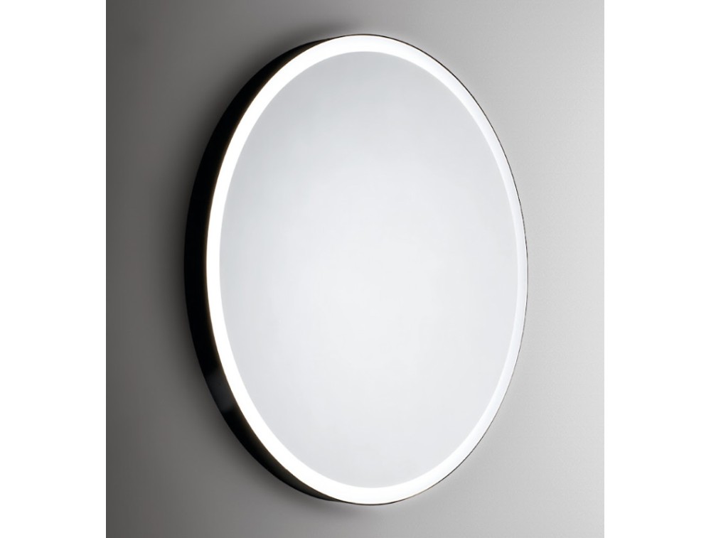 Specchio rotondo con cornice perimetrale in metallo verniciato e sabbiatura interna mm.10 retroilluminata led. Disponibile in diverse misure e finiture. Disponibile anche versione "Zen Light A" con sabbiatura interna e led, versione "Zen" senza alcun led integrato o versione "Zen Ambient" con retroilluminazione led.