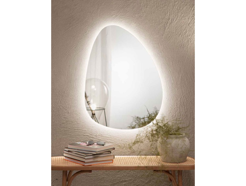 Un elemento d'arredo dal carattere organico e scultoreo, pensato per chi desidera rompere la rigidità delle linee geometriche tradizionali. La forma è ispirata agli elementi naturali, richiamando la sagoma di una goccia d'acqua. Le linee sono fluide e asimmetriche. Lo specchio non presenta bordi visibili, terminando direttamente a contatto con la luce e la parete. Questo lo rende visivamente molto leggero, quasi come se fosse un'apertura luminosa nel muro. La spedizione è gratuita e la garanzia di 2 anni.