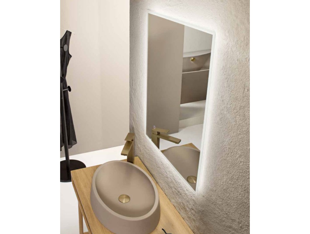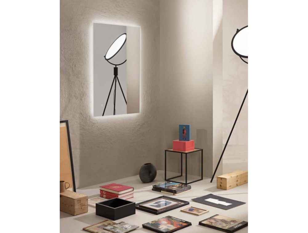 Collezione decorativa e tecnologica con specchi dagli angoli smussati e dal bordo satinato, installabili verticalmente od orizzontalmente. La retroilluminazione in 3 tonalità con dimming è gestita dal sistema touch con funzione memoria. Durata sorgente luminosa di 30.000 ore. Telaio in PC e pellicola antideflagrante sul retro dello specchio. Spessore specchio 4mm. Driver incluso. Possibile la doppia installazione tra cui verticale o orizzontale.